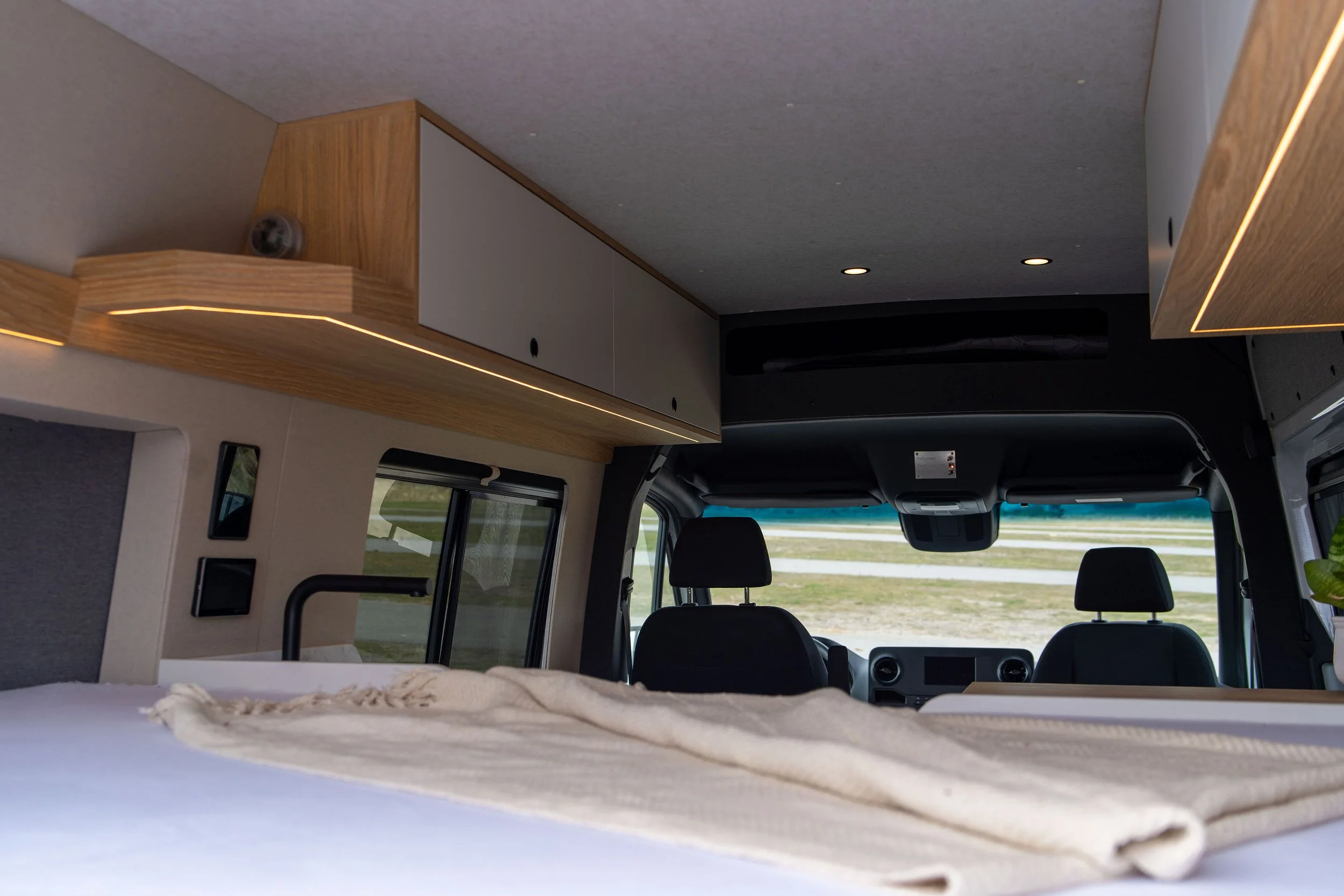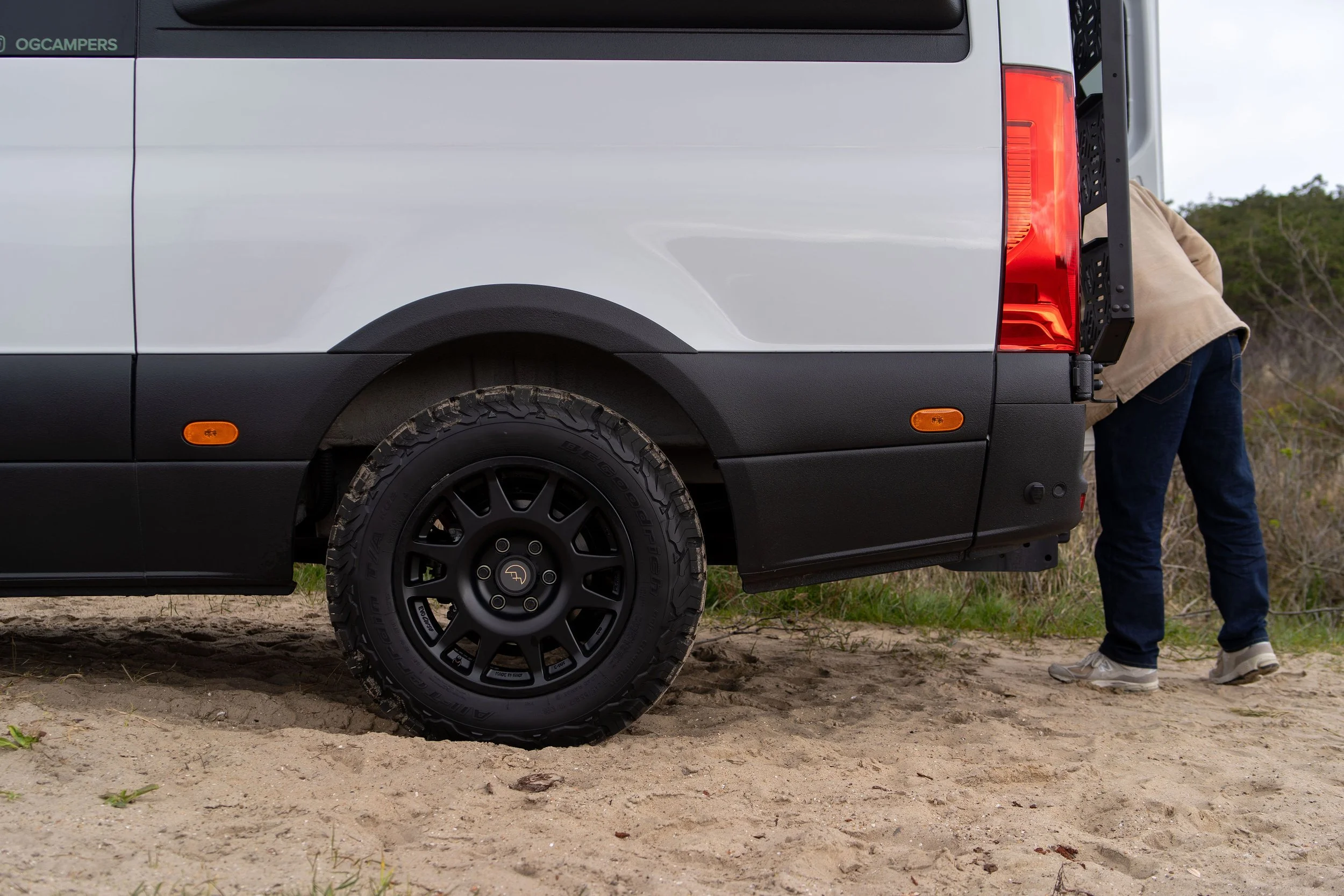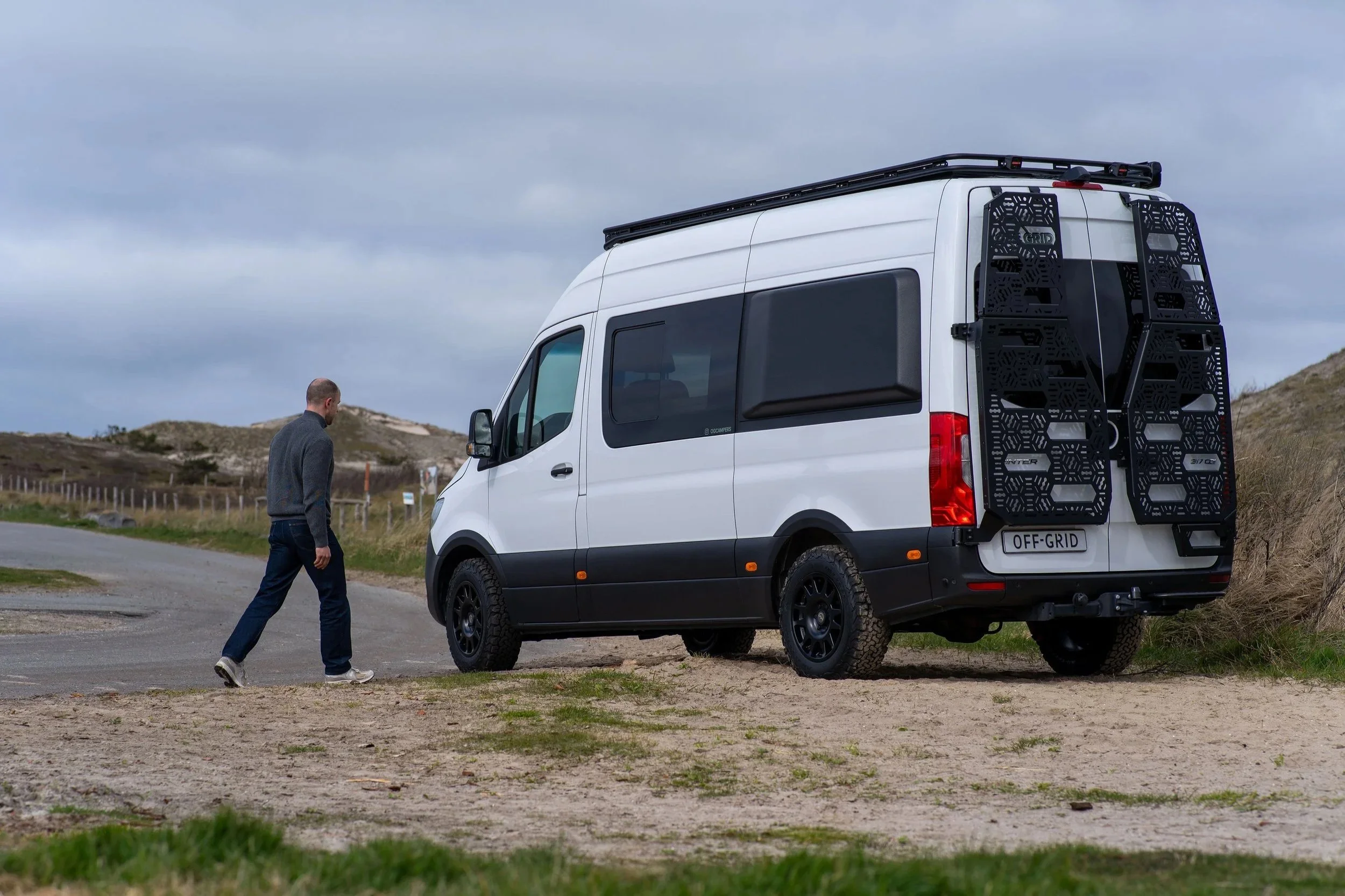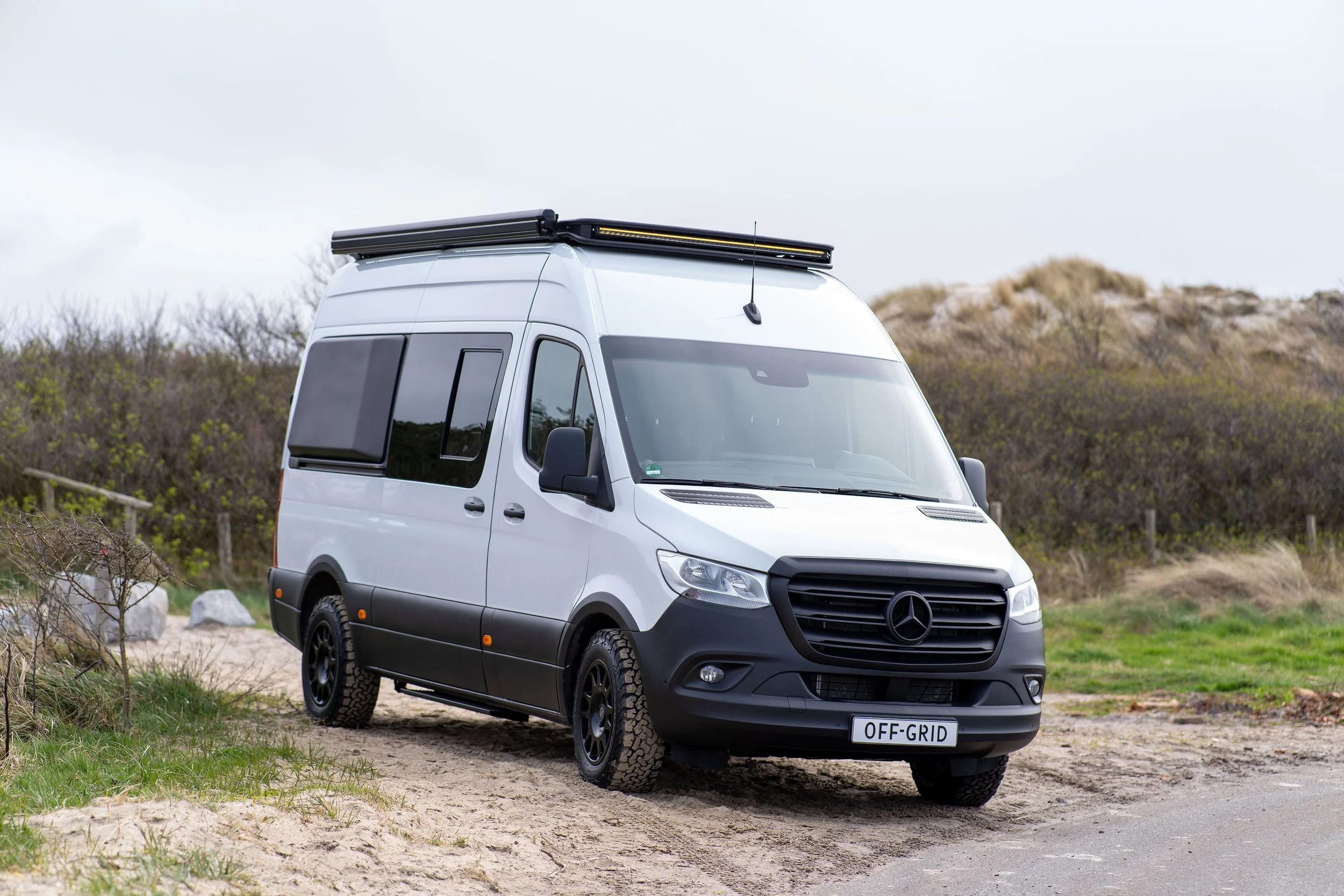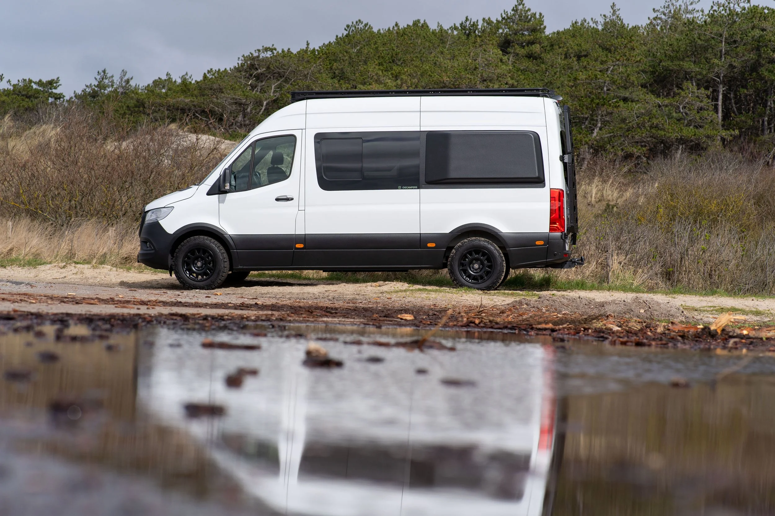 Qua uitvoering is deze camper nagenoeg full-option gebouwd, met onder andere een upgrade naar het Aquahot hydronic kachel- en warmwatersysteem. Ook aan de buitenzijde is veel aandacht besteed: met de wielen en banden, het roofrack met verlichting en het spuitwerk is dit allesbehalve een ‘saaie’ witte Sprinter geworden.